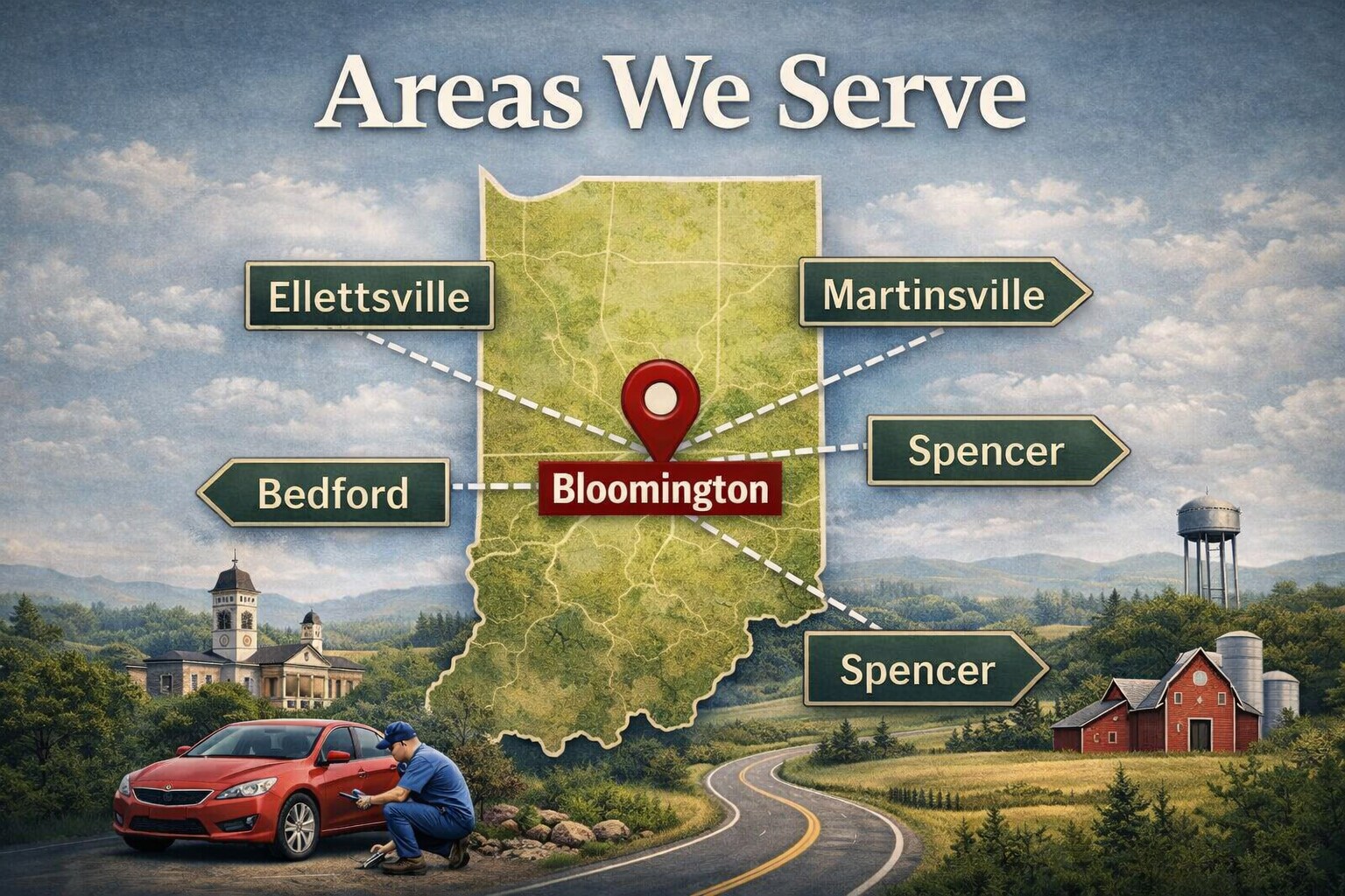 We proudly serve drivers throughout Bloomington and surrounding communities with high-quality workmanship, fast turnaround times, and insurance claim assistance.
